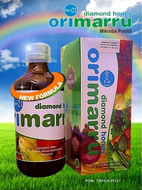 ORIMARRU adalah herbal kelas dunia kreasi anak bangsa. Perpaduan Propolis, Madu, Sarang semut, dan Kulit Manggis yang di ekstrak dan difermentasi menghasilkan microba baik / probiotik (lactobacilus Sp.) yang siap melindungi tubuh dan menaklukkan microba jahat penyebab penyakit di dalam tubuh. Formulasi pas dalam peracikannya menjadi rahasia dahsyatnya ORIMARRU.