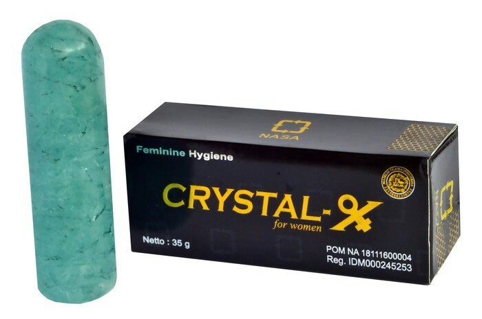 CRYSTAL X : terbuat dari mineral alam yang berfungsi membantu membunuh bakteri, virus dan kuman penyakit di miss V Anda. Serta menghilangkan bau tak sedap, dipadu dengan zat-zat antiseptik dari daun sirih untuk menyembuhkan infeksi dan iritasi, rumput laut untuk memberikan nutrisi pada jaringan epitel pada rongga miss V dan zat viniel dari daun sisik naga yang akan melenturkan dan merapatkan miss V Anda.