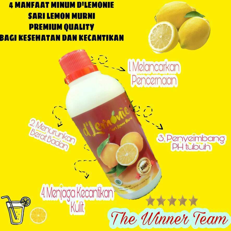 Perhatian : 1. Produk ini tidak memakai pengawet sehingga antara masa produksi sampai masa kadaluwarsa hanya 6 bulan. 2. Produk ini tidak memakai campuran bahan bahan lainnya sehingga antara 1 botol dengan botol lainnya bisa berbeda beda warna kuningnya (bisa kuning bening bisa juga kuning pekat) tergantung dari hasil perasan buah lemon masing masing. Isi 500 ml Komposisi Seri Jeruk Lemon Murni DinKes 213327303318322 Manfaat : 1. Stamina Harian dan Daya Tahan Tubuh 2. Detoksifikasi 3. Kaya Vit C 4. Dapat dimanfaatkan untuk obat luar 5. Masker Rambut 6. Masker Wajah (memperkecil pori pori) 7. Diet 8. Mengibati Maag 9. Mengatasi sakit tenggorokan 10. Menghentikan pendarahan internal 11. Merawat kesehatan mulut 12. Mengatasi kulit kering Aturan pakai : Tuangkan 1 sendok untuk gelas kecil atau 2 sendok untuk gelas besar lalu tambahan air hangat.