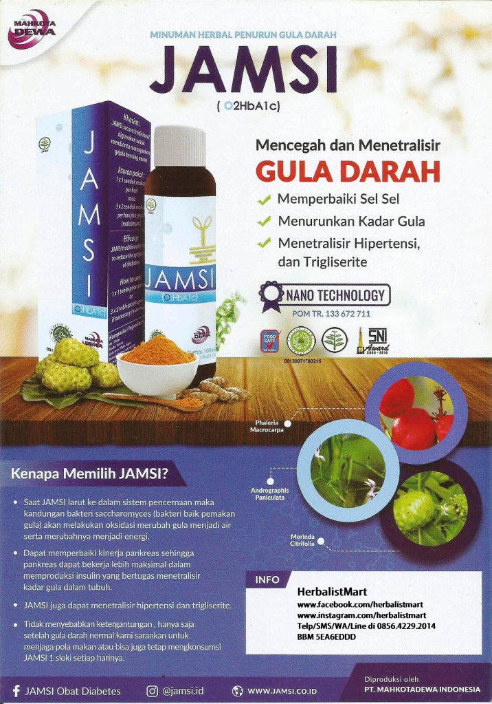 Untuk penderita diabet : - 3 x 2 sendok makan ) bila masih minum obat medis bisa minum JAMSI 2 x 2 sendok makan, obat medis dikurangi secara bertahap).